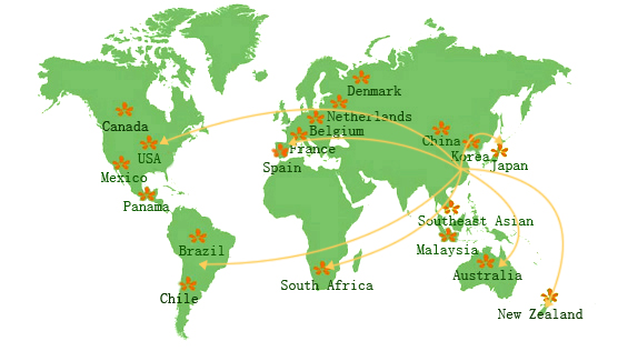 公司在日本、美國(guó)、南美、歐洲等地設(shè)有分公司或有合作伙伴,充分與國(guó)際接軌,開(kāi)拓國(guó)際市場(chǎng),大量引進(jìn)世界各地的優(yōu)良品種和種質(zhì)資源,在國(guó)內(nèi)研究開(kāi)發(fā)、加工、示范、推廣,再分銷(xiāo)到世界各地。
