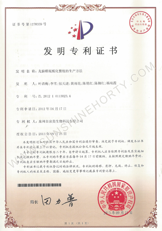 發(fā)明專利證書