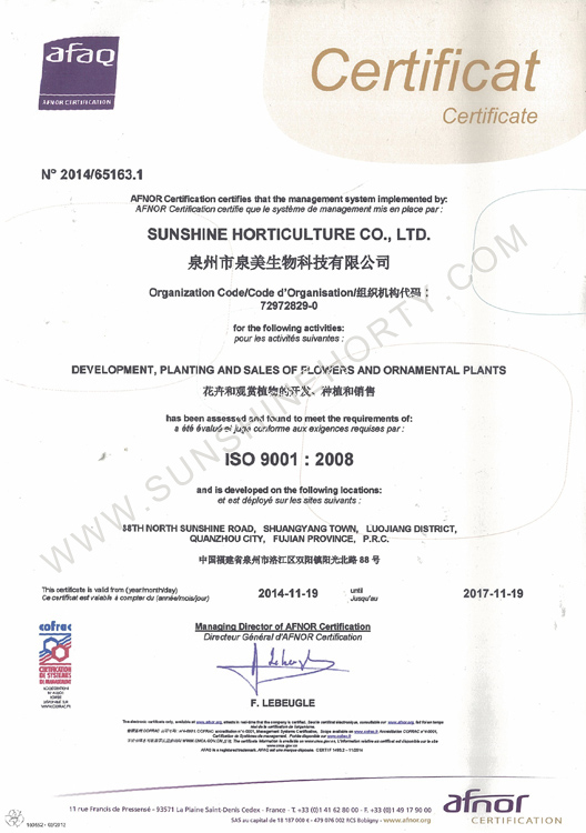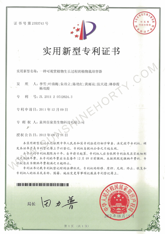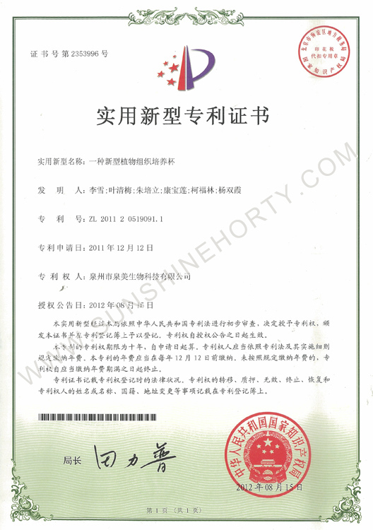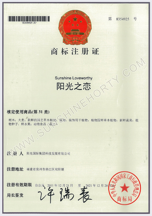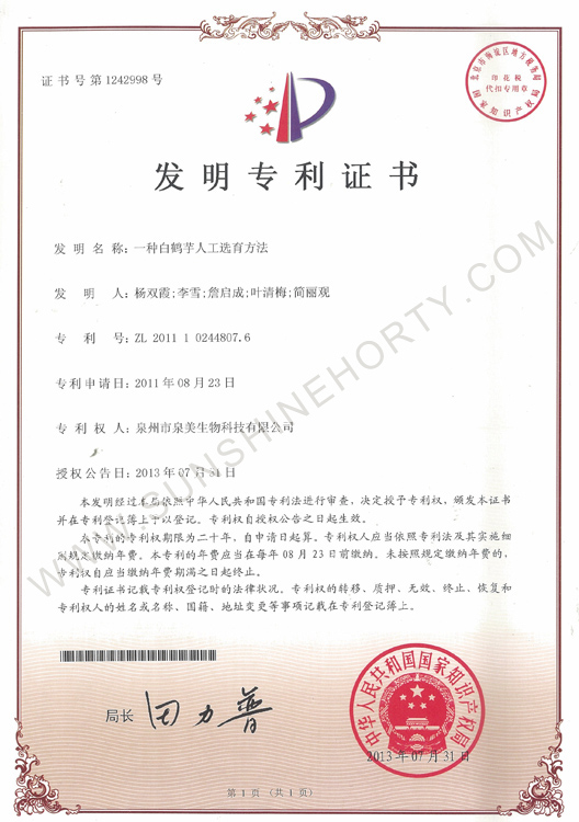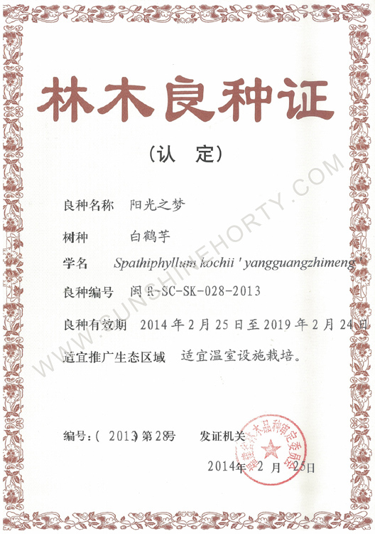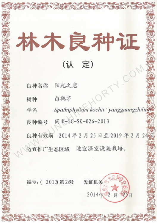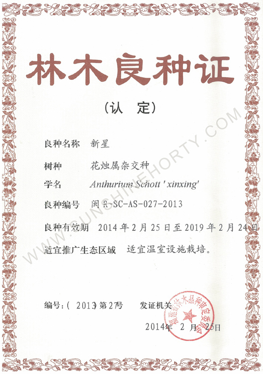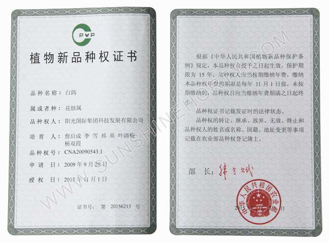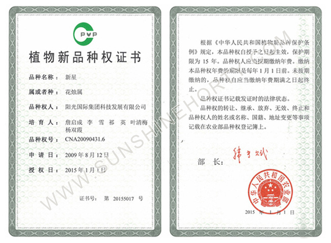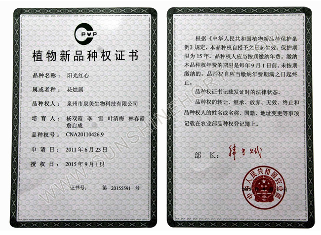 公司先后申報了20多項專利,獲準專利15個,通過新品種省級認定4個。自主選育的新品種“新星”紅掌、“紅心”紅掌獲農業(yè)部新品種權保護;“陽光之夢”,“陽光之戀”,“陽光之星”系列白掌新品種獲產品商標保護。公司對自主知識產權進行了有效保護。