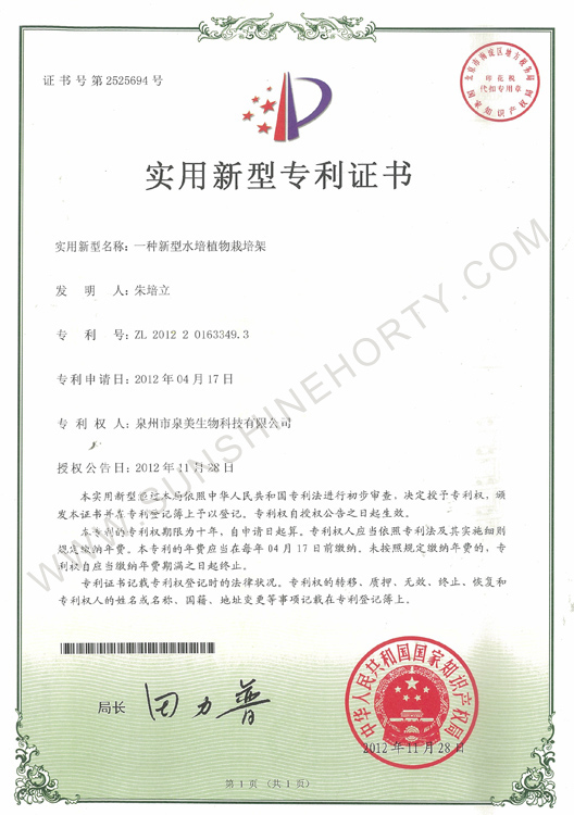 實用新型專利證書