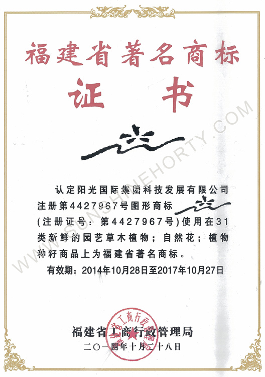 福建省著名商標證書
